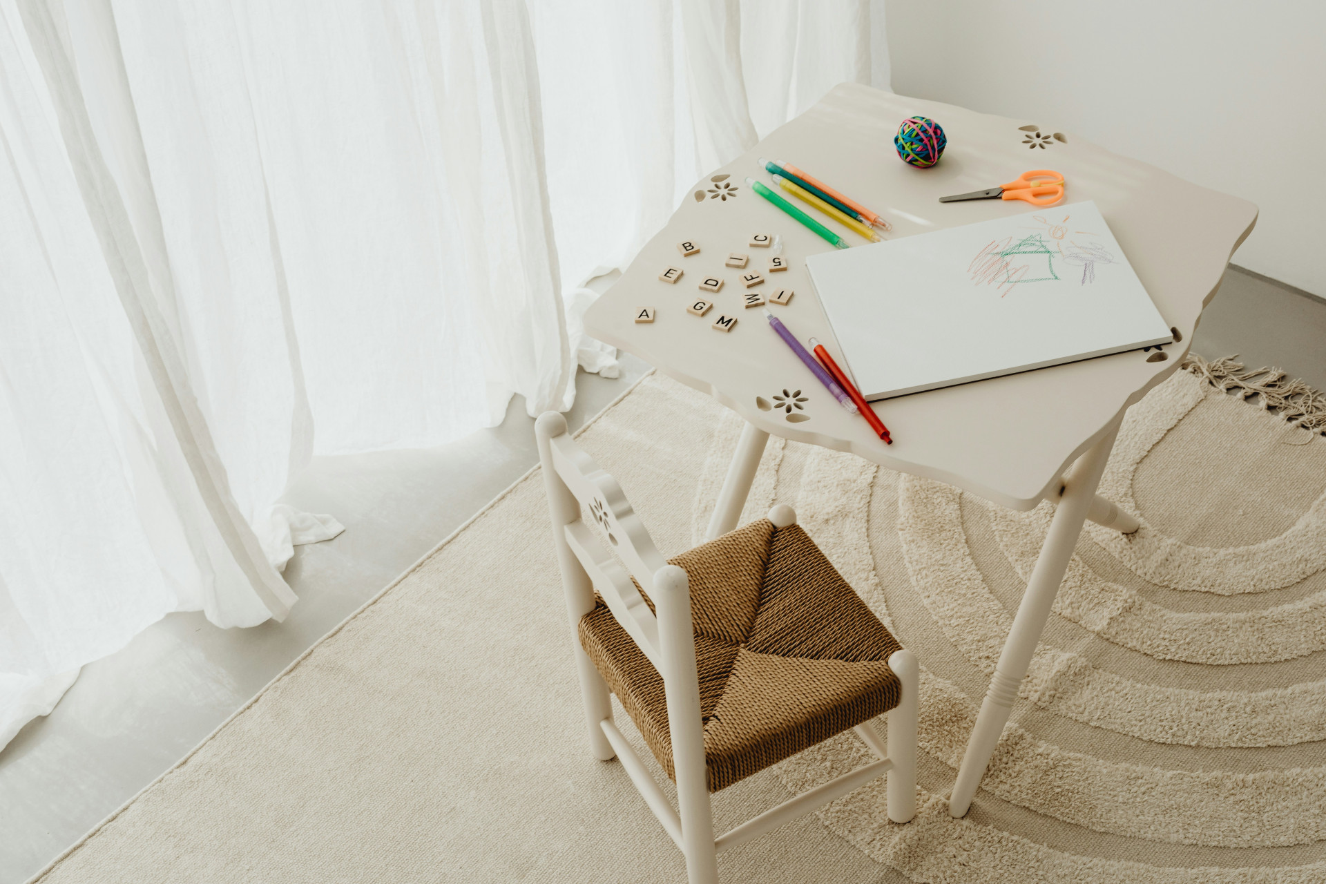 - Kreativt hjørne: Et lille bord med plads til tegning, perler eller andre hobbyer.